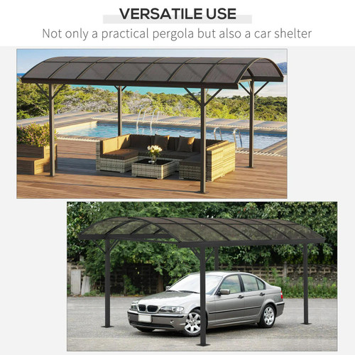 Add style and flair to any outdoor space with this Outsunny pergola. The large size provides plenty of room underneath for a full dining/seating set up - meaning there's room for the whole family. The aluminium frame is combined with steel structure to ensure it stands in place. The polycarbonate panel roof shields you from direct sunlight and mild rain. To complete, why not grab some chairs and table, so you can sit underneath and enjoy the hot days and evenings soon approaching us