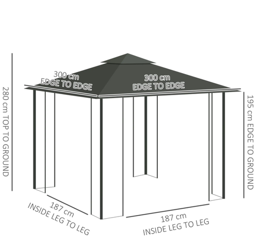 3m x 3m Steel Frame Garden Gazebo - Professional Outdoor Shelter