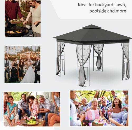 - 1 × Steel frame gazebo with dual-tier canopy.